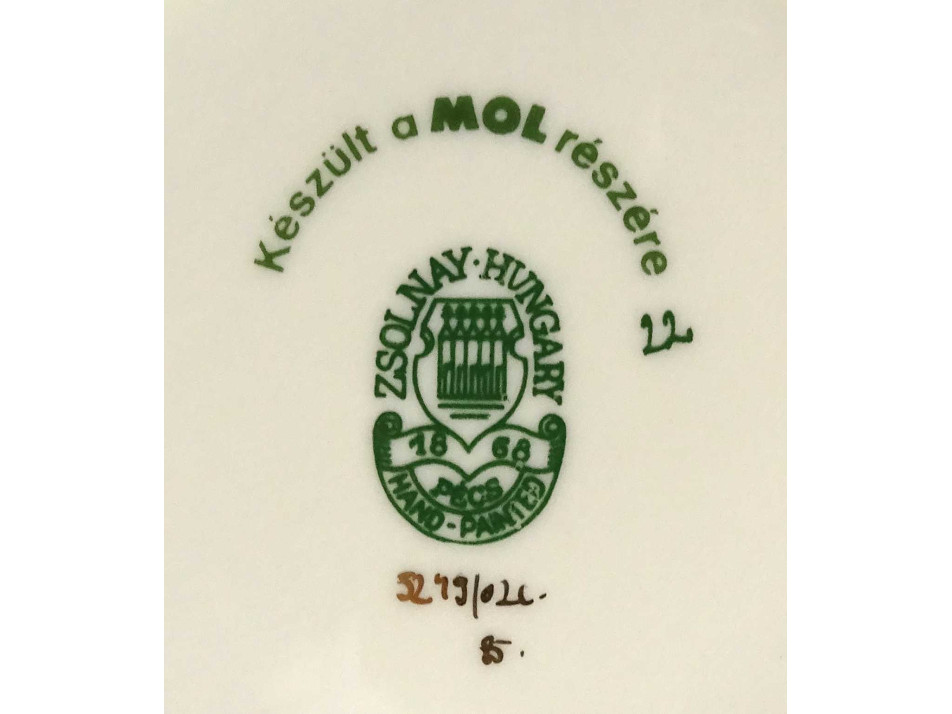 Alján zöld színű felirat és Zsolnay márkajelzés: