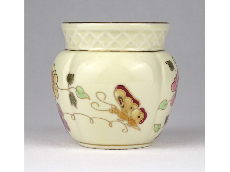 Kisméretű, vajszínű, pillangós Zsolnay porcelán kaspó