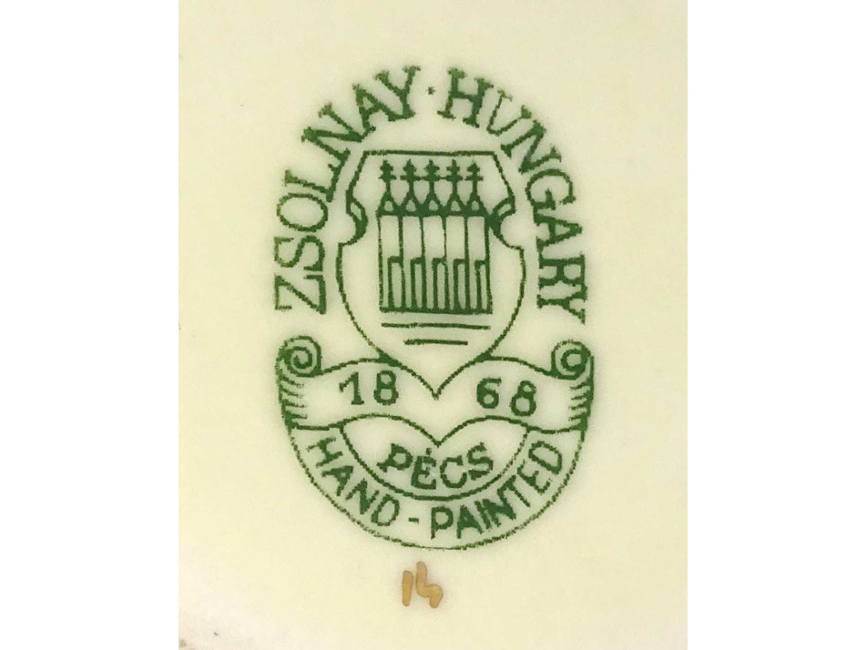 Alján zöld Zsolnay öttornyú márkajelzés: