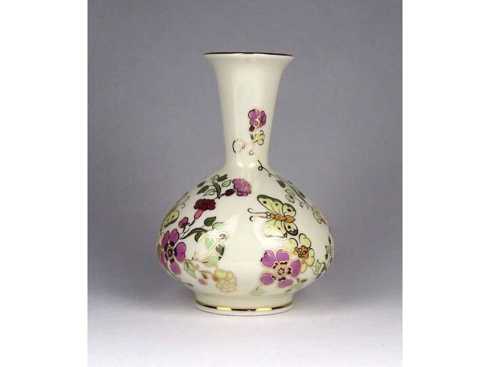 Régi pillangós vajszínű Zsolnay porcelán váza 14.6 cm
