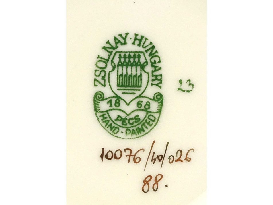 Alján zöld Zsolnay öttornyú márkajelzés: