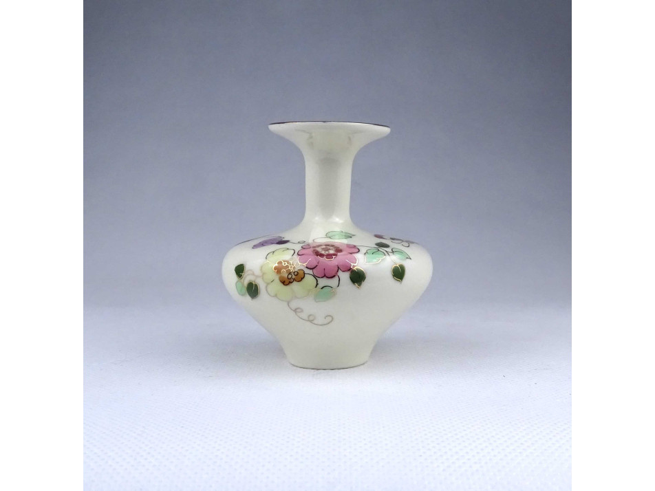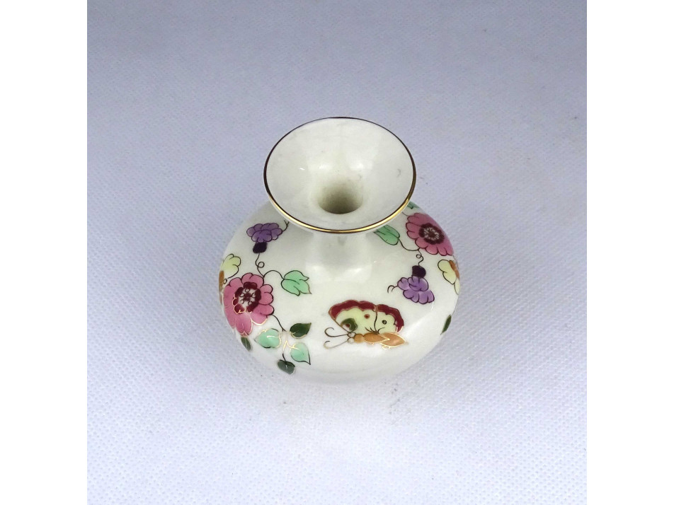 Vajszínű pillangó mintás Zsolnay porcelán váza díszváza 8 cm