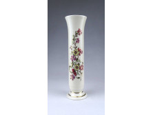 Hibátlan állapotú, vajszínű, virág- és pillangó mintás, aranyozott Zsolnay porcelán díszváza.