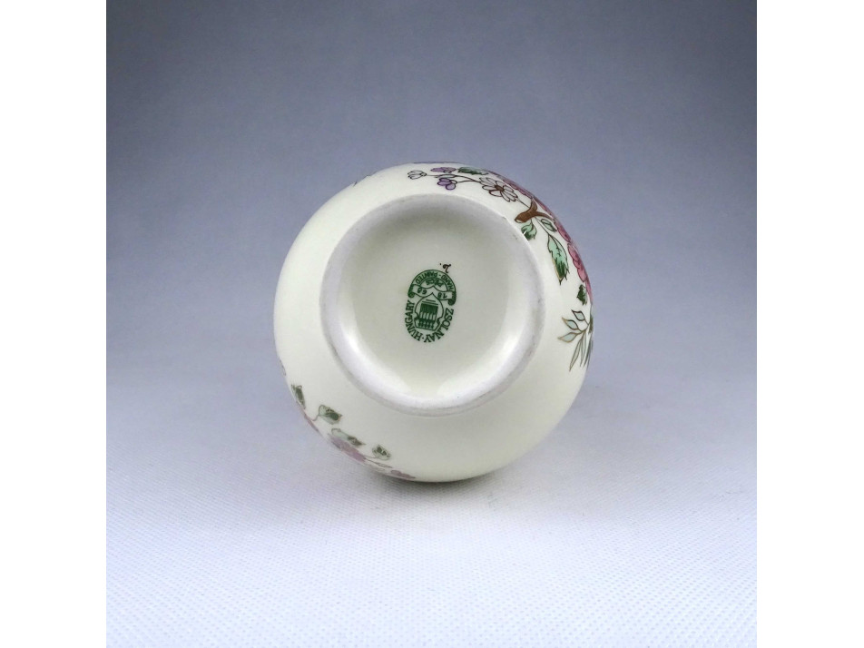 Régi vajszínű virágmintás Zsolnay porcelán váza 12.5 cm
