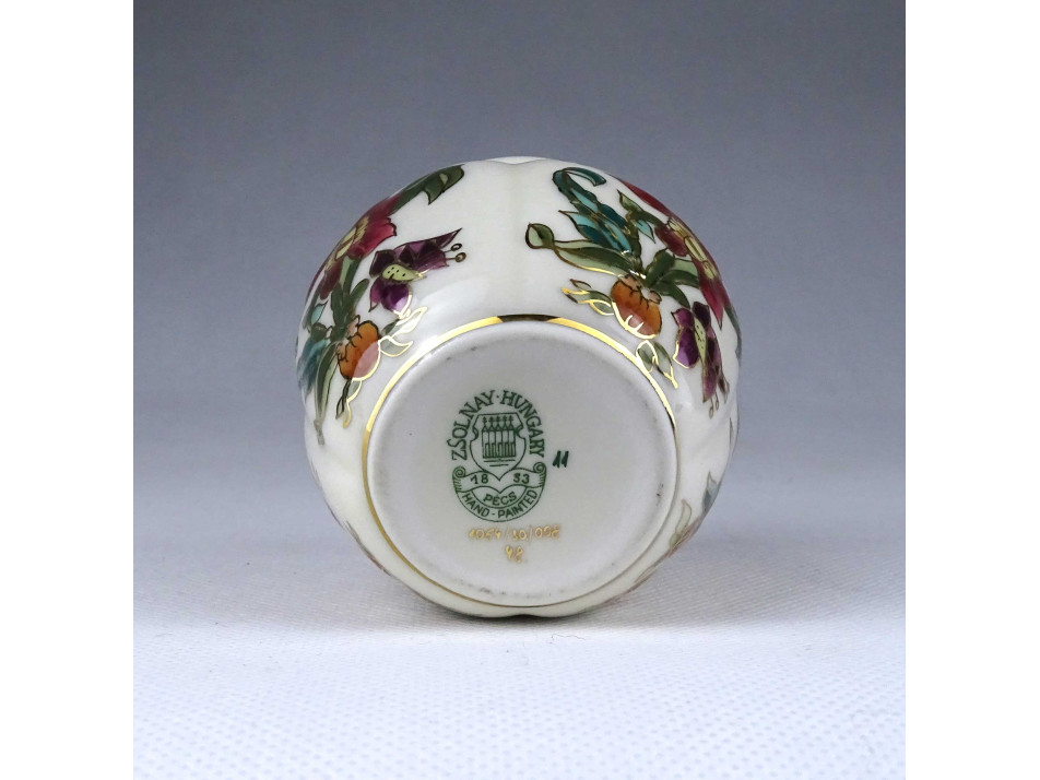Vajszínű aranyozott orchidea mintás Zsolnay porcelán váza kis kaspó 6.7 cm