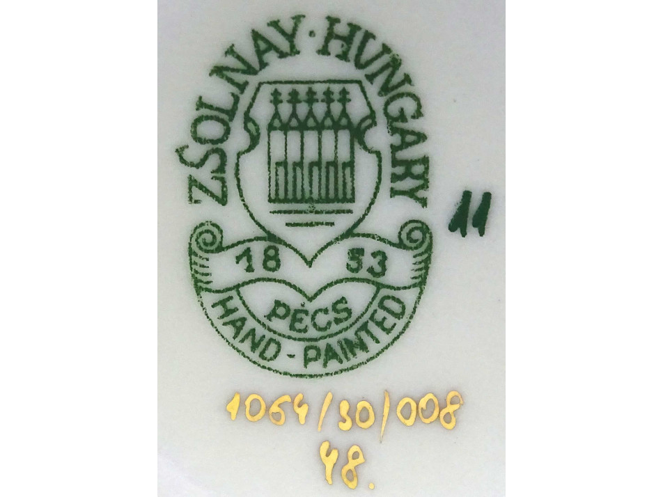 Alján zöld Zsolnay öttornyú márkajelzés: