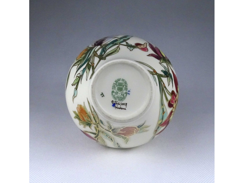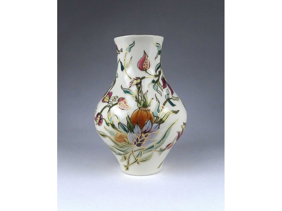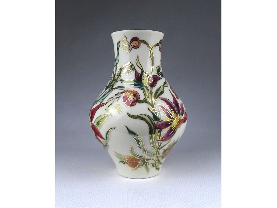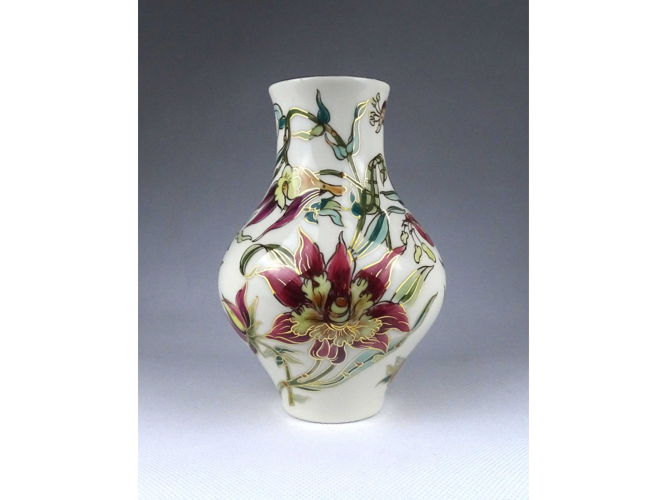 Vajszínű orchidea mintás Zsolnay porcelán váza 17.6 cm