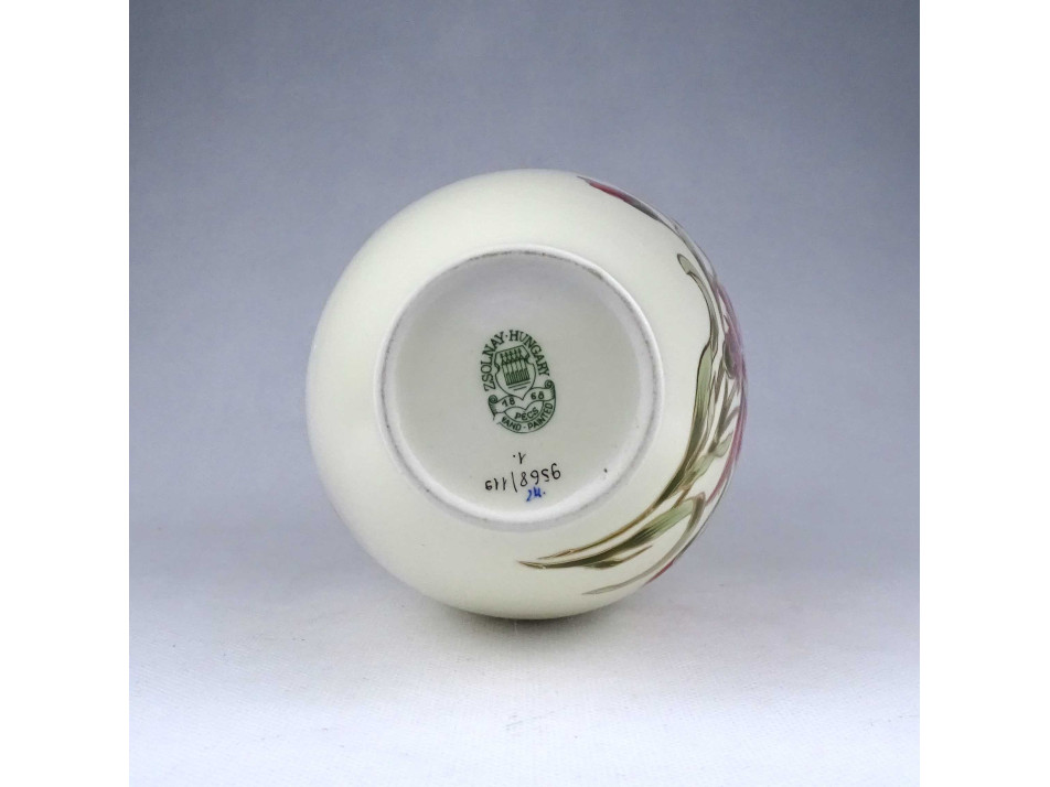 Vajszínű virágmintás Zsolnay porcelán váza 26.3 cm