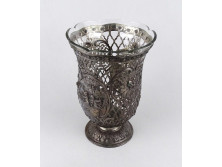 Antik, 800-as ezüst, nagyméretű, háromágú gyertyatartó asztali kandaláber pár 1374 g