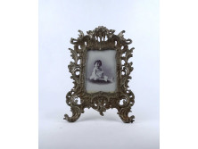 Antik négy alakos gyerekes intarziakép keretben 31 x 27 cm