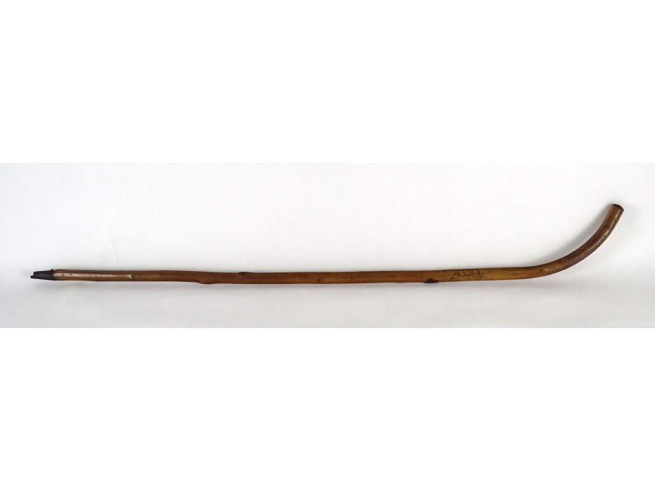 Régi, masszív, hajlított, göcsörtös, erős görbebot. A bot végén fém koptató található, rajta 1 darab havasi gyopáros bot címke: VISOKE TATRY