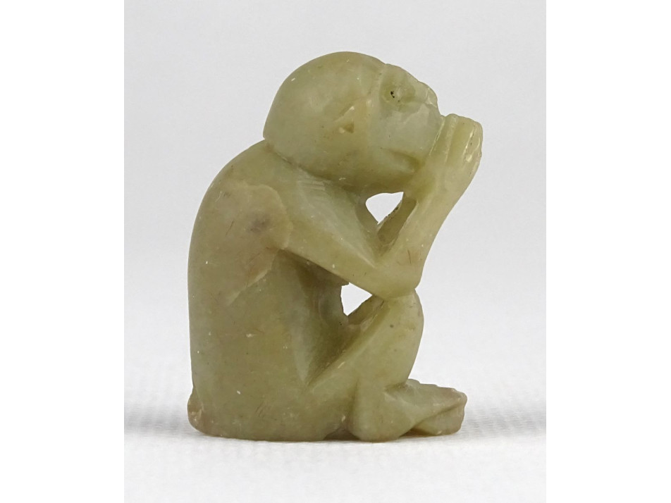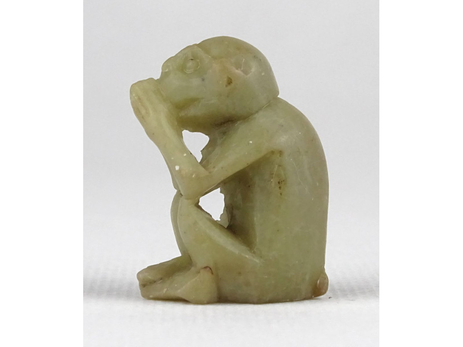 Hibátlan állapotú, kis méretű faragott zsírkő majom.