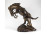 Nagy méretű, hibátlan állapotú lovas szobor. Ágaskodó ló szobor, mellett térdelő zsoké, lovas. A talapzat gipsszel kiöntött.