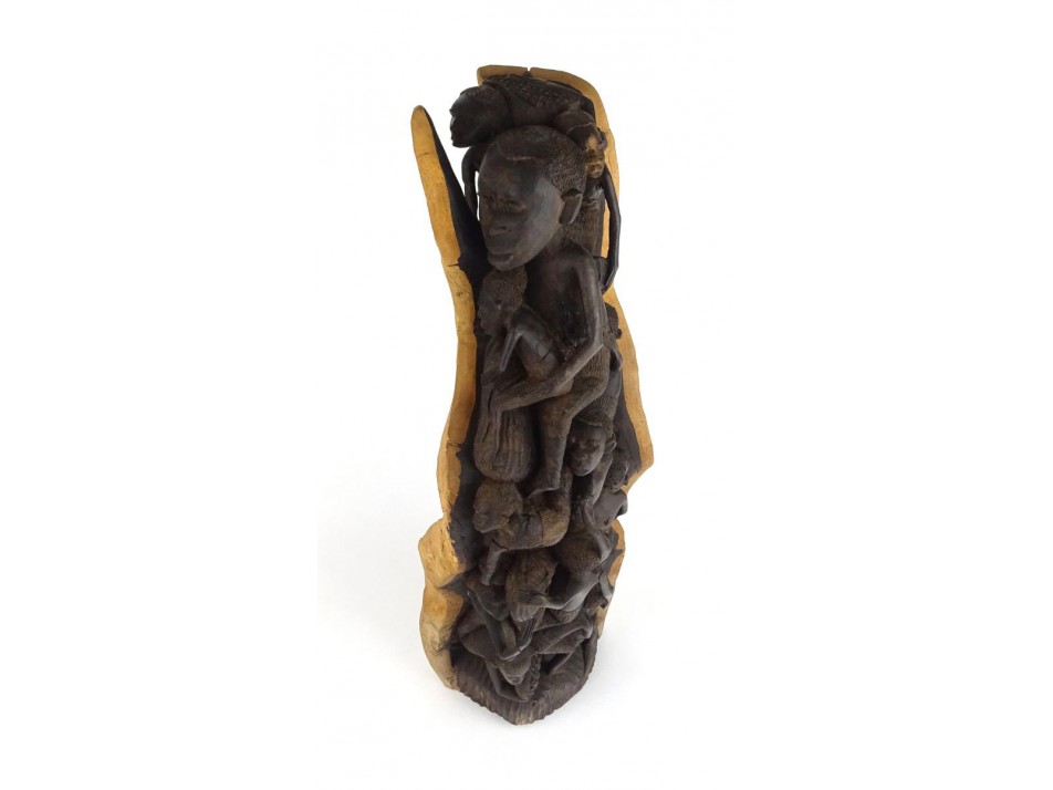 Különleges, nagyon nehéz, sokalakos fafaragás, szoborkompozíció az Afrikai népi kultúrából. Egy fából kifaragva.