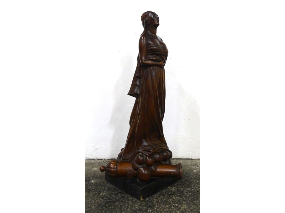 Antik hatalmas faragott nő szobor ágyúval 98.5 cm