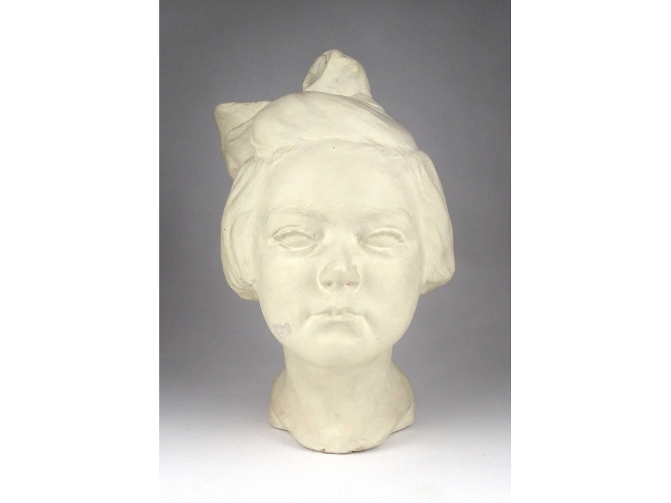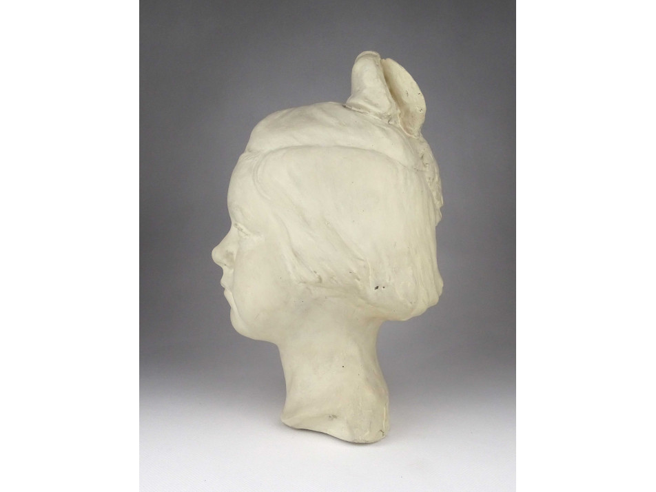 Régi, jelzett, gipszből megformázott kislány portré, büszt, fej szobor, művészi munka.