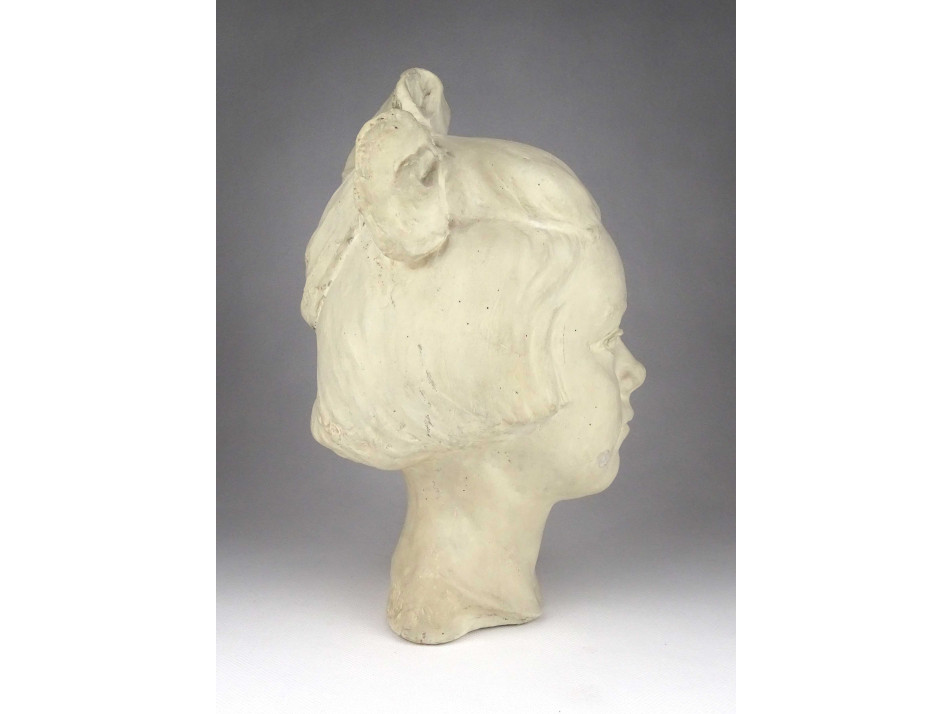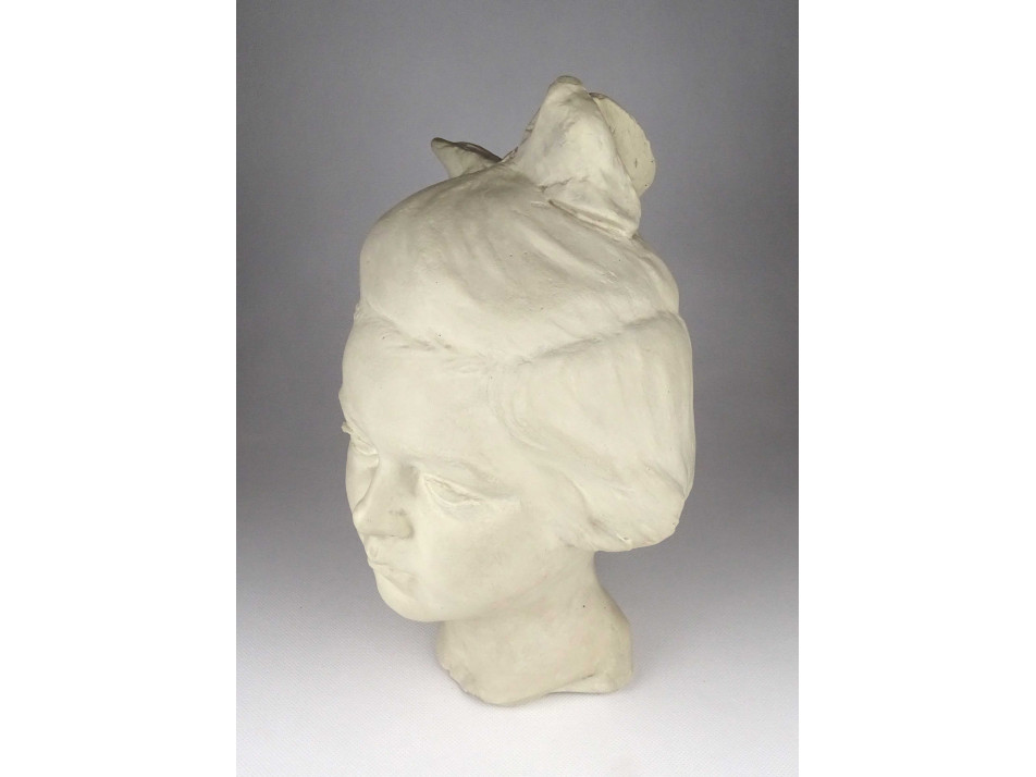 Régi jelzett kislány fej gipsz szobor 30.5 cm