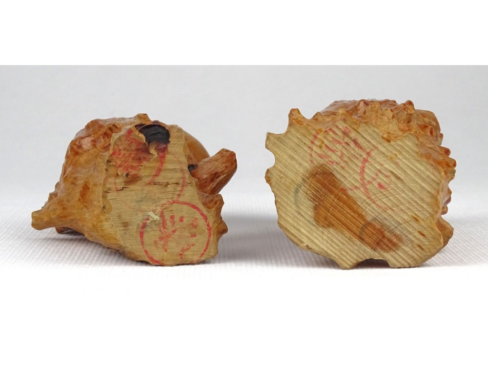 Kemény fából, fa gyökeréből faragott két darab kis méretű kínai bölcs alak pár.