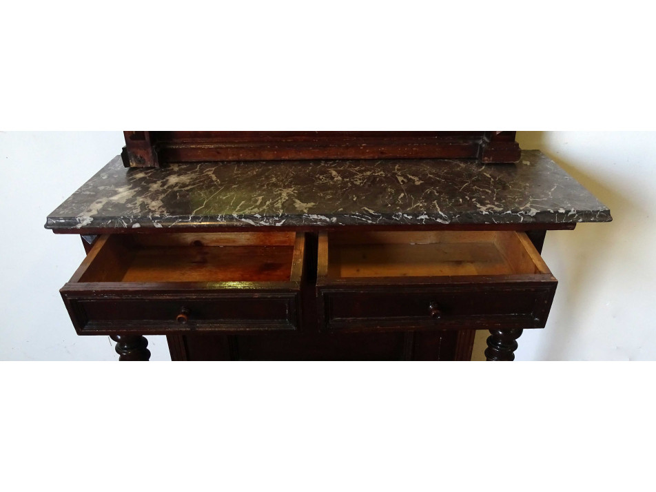 Antik ónémet kétfiókos márványlapos konzolasztal falitükörrel piperetükör 106 x 95.5 cm