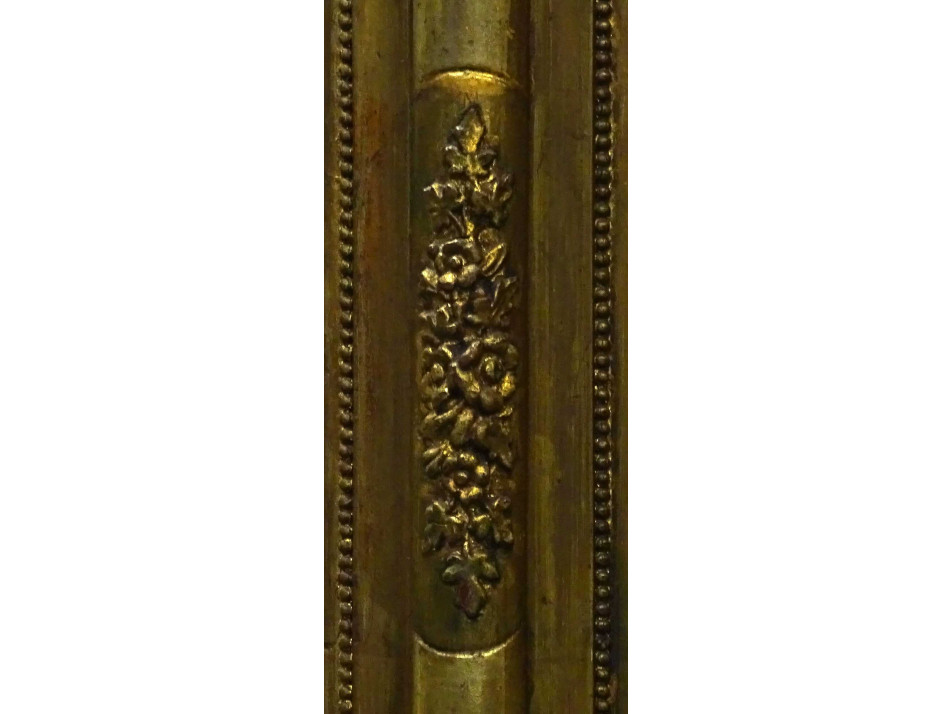 Hibátlan állapotú, antik, aranyozott biedermeier keretű tükör, falra akasztási lehetőséggel. Benne cserélt, hibátlan, vakfolt mentes, modern tükör található. Azonnal enteriőrbe helyezhető állapotban van.