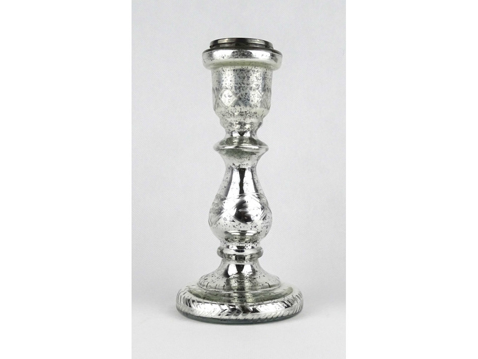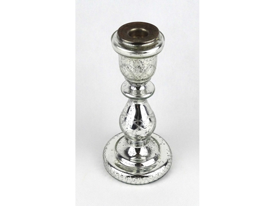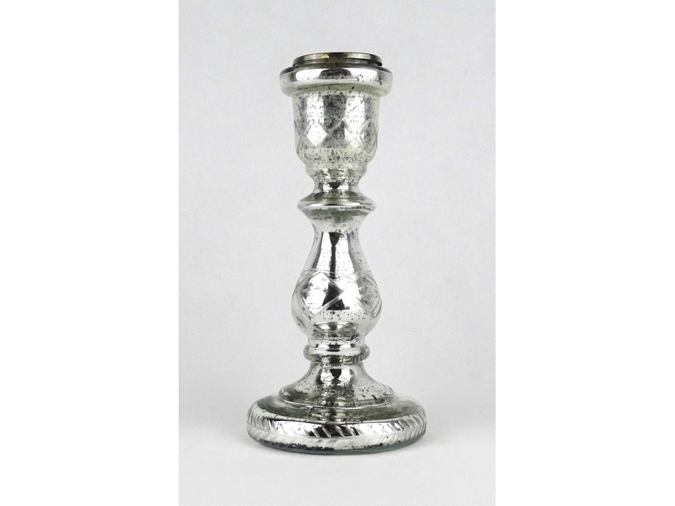 Antik foncsorozott csiszolt fújtüveg tükrös gyertyatartó 21 cm