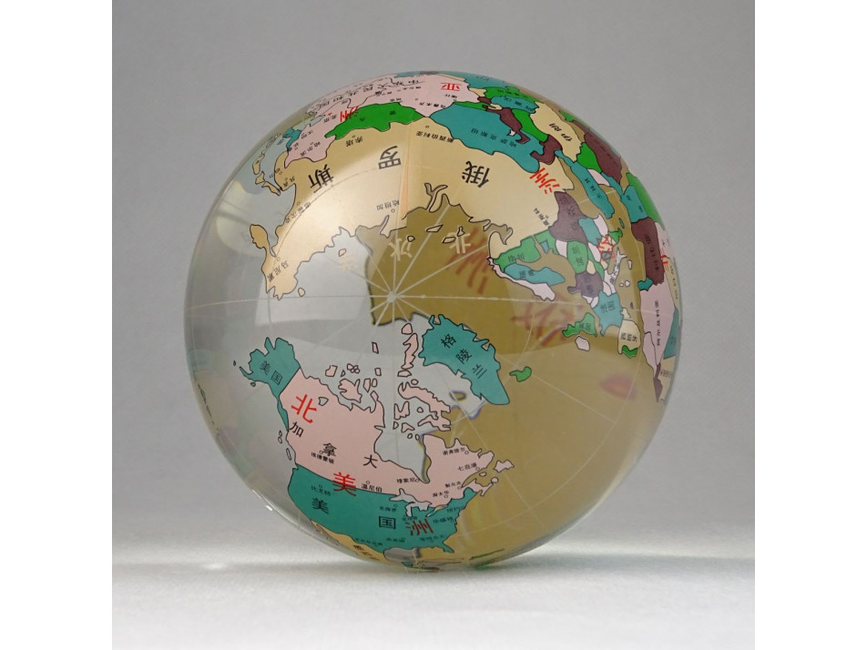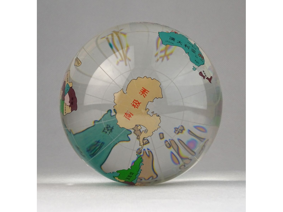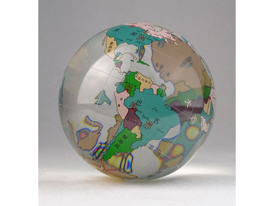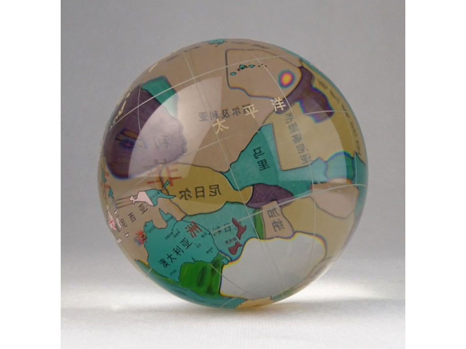 Hibátlan állapotú, kínai üveg földgömb, dísztárgy.