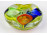 Hibátlan állapotú, színezett, sárga, zöld, kék és narancssárga művészi üveg, cseh fújt üveg tál, hamutál a XX. század második feléből.