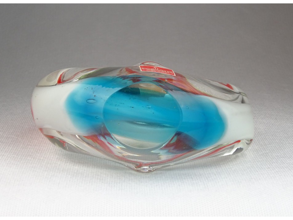 Hibátlan állapotú, madár alakú, színezett művészi üveg hamutál.