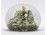 Antik tömör fújt üveg levélnehezék. Belsejében kristály szerű kőzet díszítés látható.