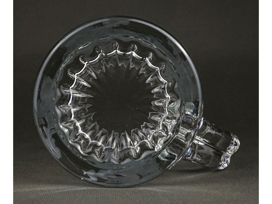 Hibátlan állapotú, kristály sörös korsó. Két oldalán csiszolt virágos népi motívumok láthatók.