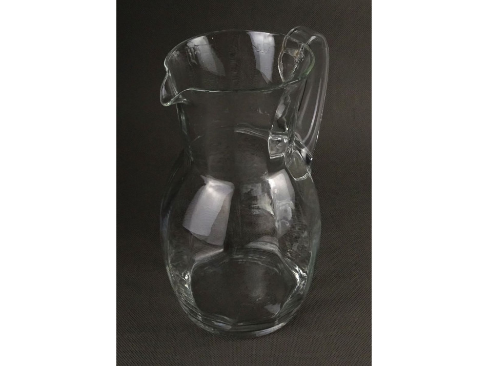 Hibátlan állapotú, fújt üveg kancsó, boroskancsó, vizeskancsó. A kancsó teste enyhén bordázott.