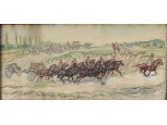 Mühlbeck Károly : Lovastüzér fogat akvarell 31 x 15 cm