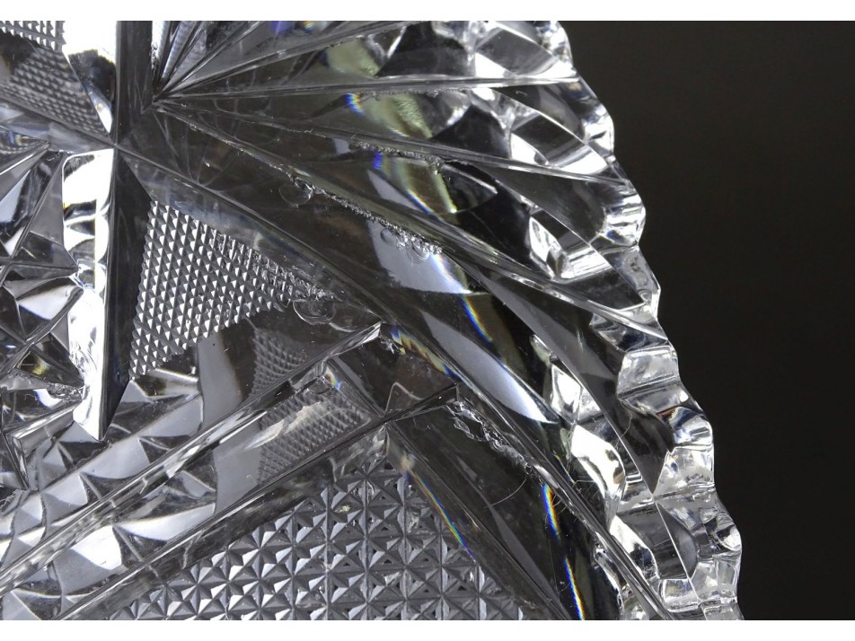 Csiszolatokkal díszített, vastag falú asztalközép kínáló tál, gyümölcskínáló tál, tálca. Használatból eredő apró esztétikai hibák előfordulhatnak rajta.