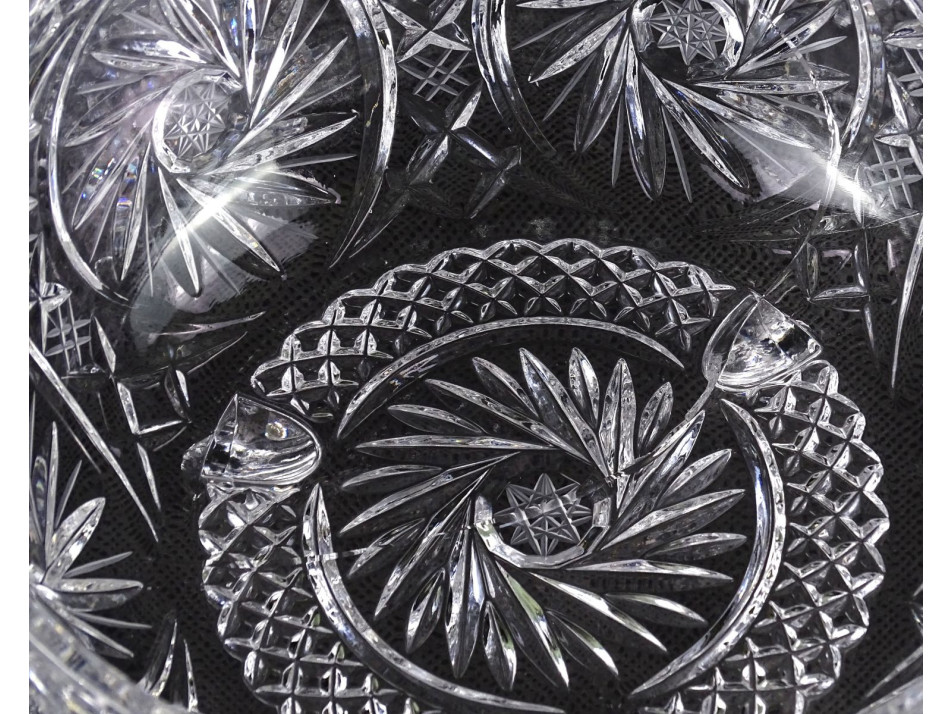Régi nagyméretű bordó csiszolt kristály váza 21 cm