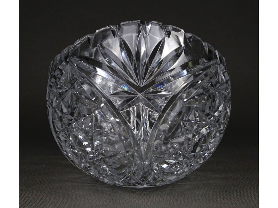 Csiszolatokkal gazdagon díszített, nagy méretű, vastagfalú gyönyörű ovális alakú kristály gyümölcstál, kínáló tál, gyümölcskínáló tál.