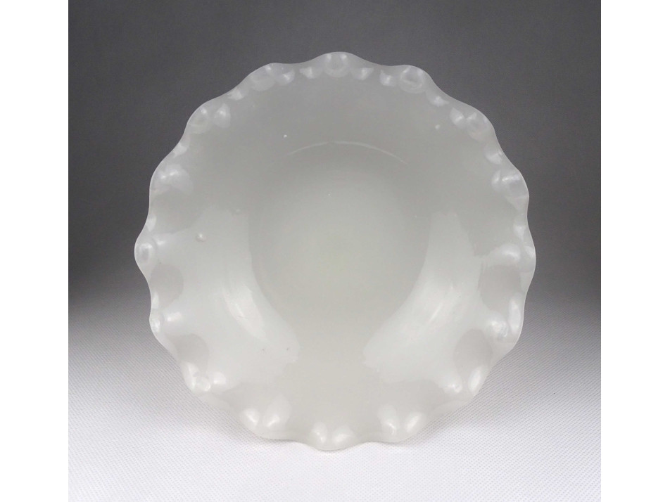 Antik fehér kalcedon üveg talpas kínáló tál