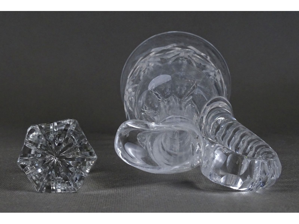 Nagyméretű régi ecetes vagy olajos kristály kínáló kiöntő dugóval 26.5 cm