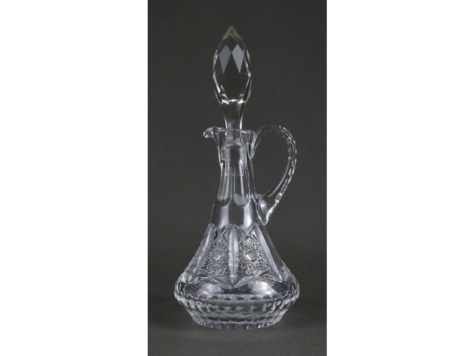 Gyönyörű csiszolt ecetes vagy olajos kristály kínáló kiöntő dugóval 24.5 cm