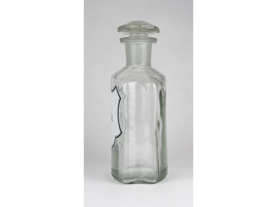 Régi, szép állapotú, áttetsző gyógyszertári üveg, patikaüveg.