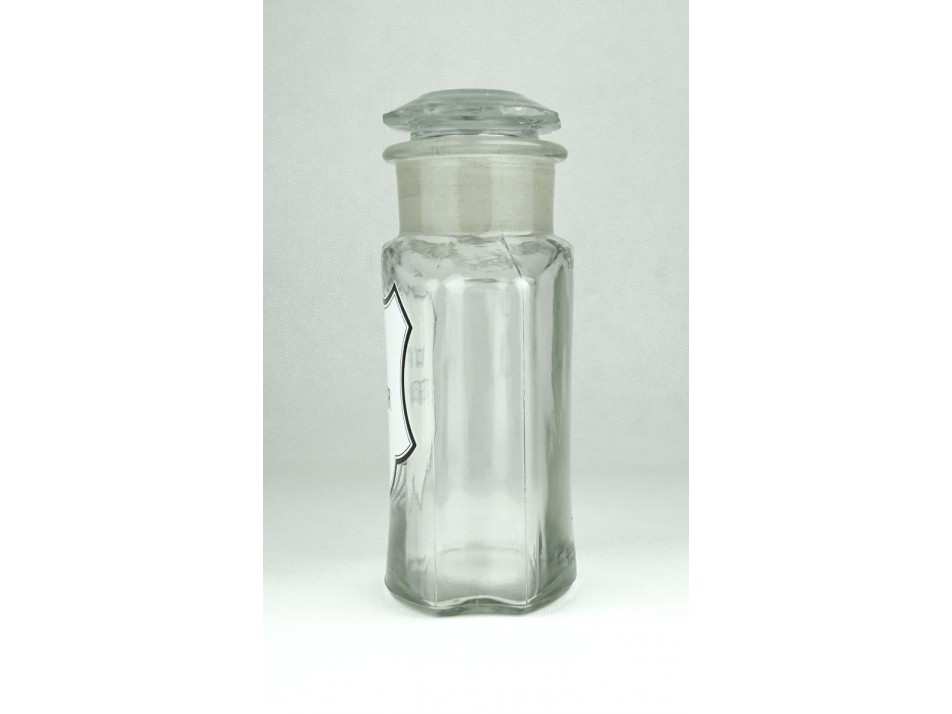 Régi, szép állapotú, áttetsző gyógyszertári üveg, patikaüveg.
