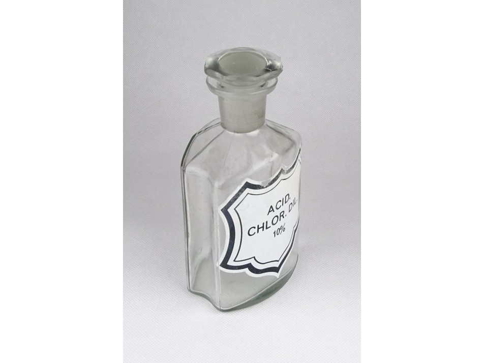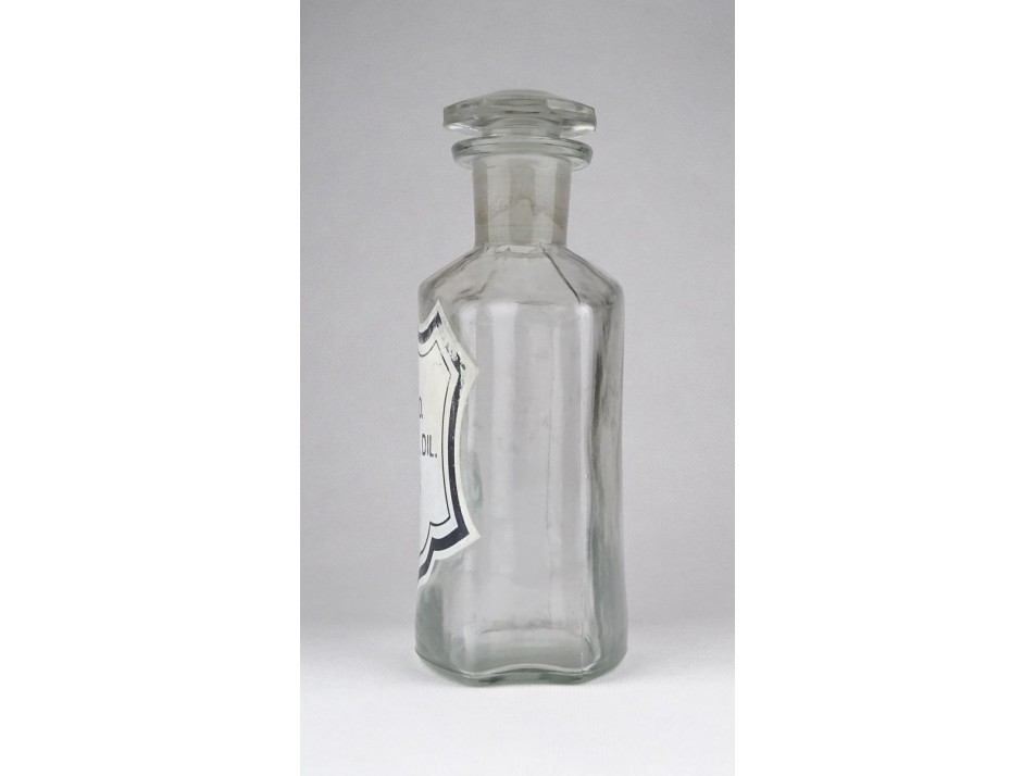 Régi, szép állapotú, áttetsző gyógyszertári üveg, patikaüveg.