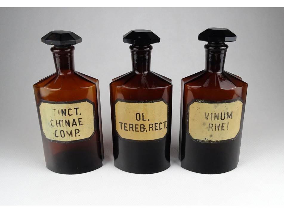 Régi barna gyógyszertári patika üveg 3 darab