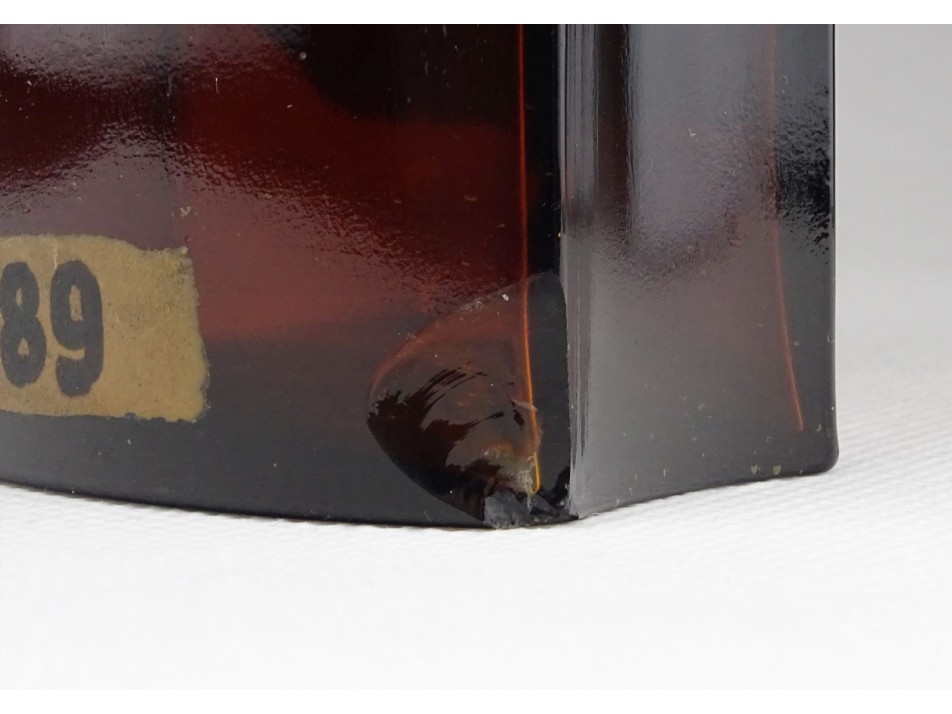 Régi, dugós gyógyszertári üveg, barna, borostyánsárga színű patikaüveg.