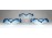Antik fodros szélű fújt szakított üveg desszertes készlet. Aljukon látható a szakítás nyoma. Színe tejfehér, pereme kék, illetve aranyozott.