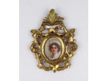 Antik laparanyozott fakeretben lévő porcelán miniatura női portré 11 x 8.5 cm