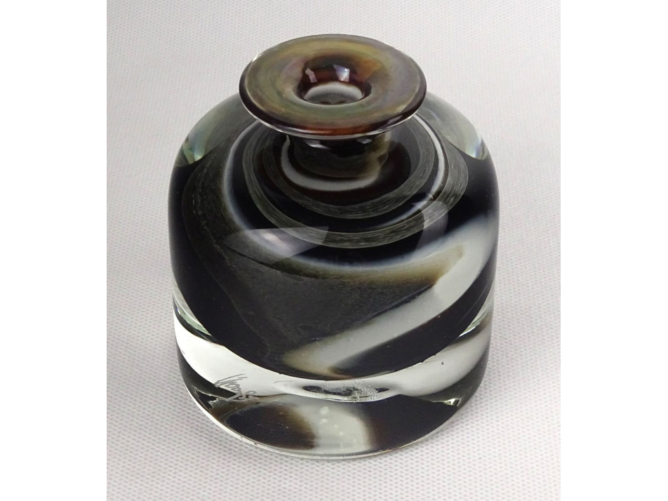 Különleges jelzett fújt üveg váza díszváza 9 cm