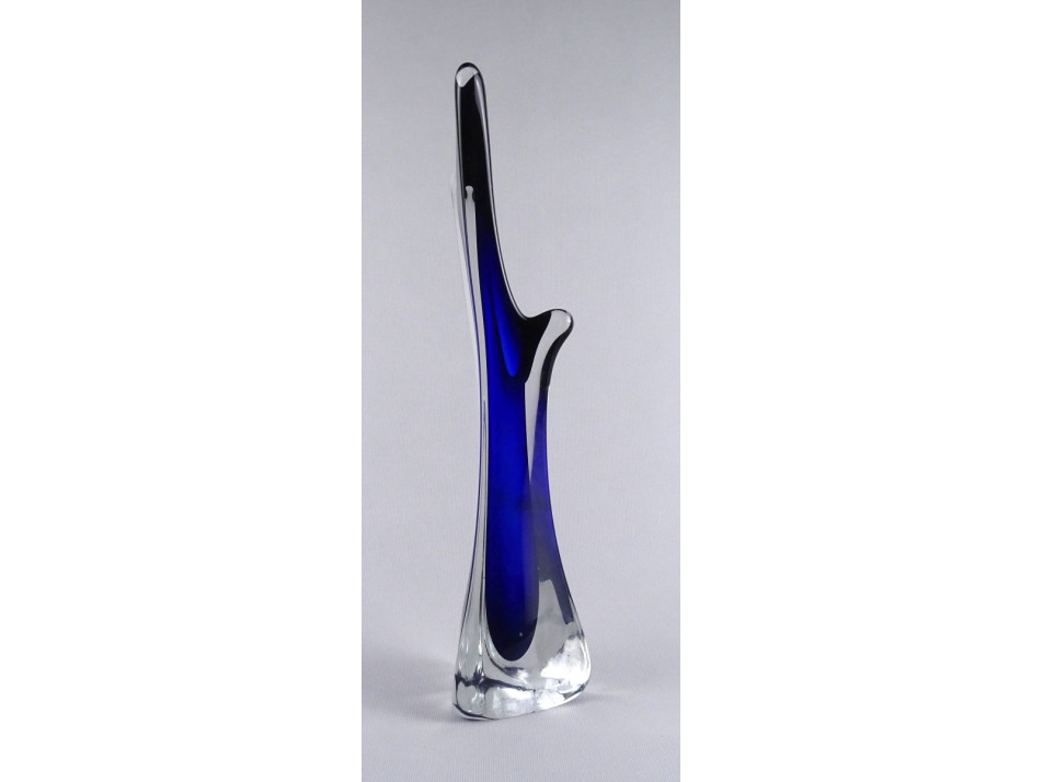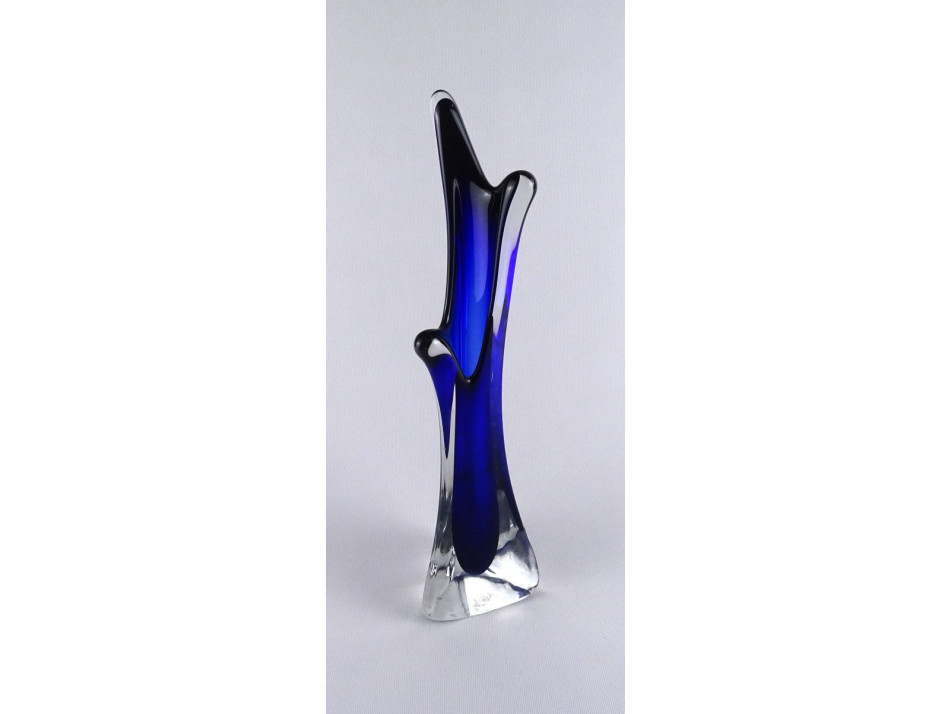 Hibátlan állapotú, vastag falú, szögletes, kék színű, művészi, muránoi Flavio Poli fújtüveg váza, díszváza.