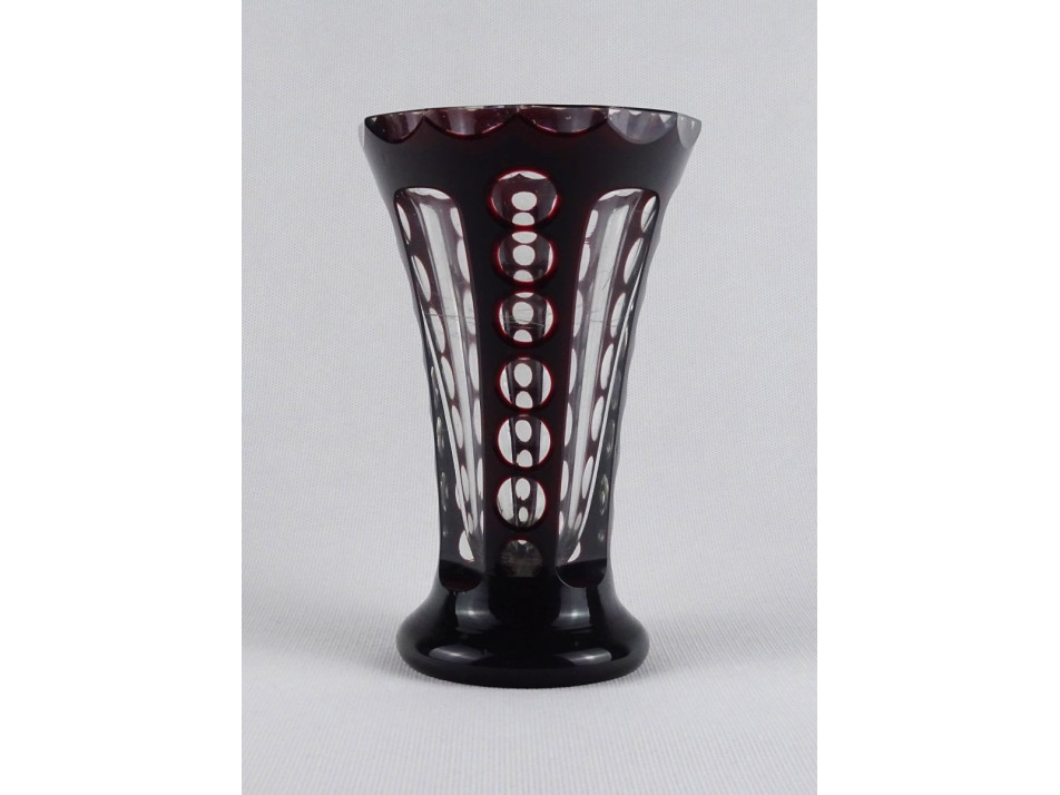 Hibátlan állapotú, csiszolt, bordóra színezett, vastag falú üveg váza, díszváza.