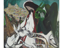 Antik, XIX. századi, szép állapotú, piros és arany színű selyem brokát, papi stóla. Anyaga erősen kopott, feslett, egy darabon hiányzik a selyem szövet. Középen hímzett arany kereszttel díszítve. Két végén arany színű szövet rojtozás található.